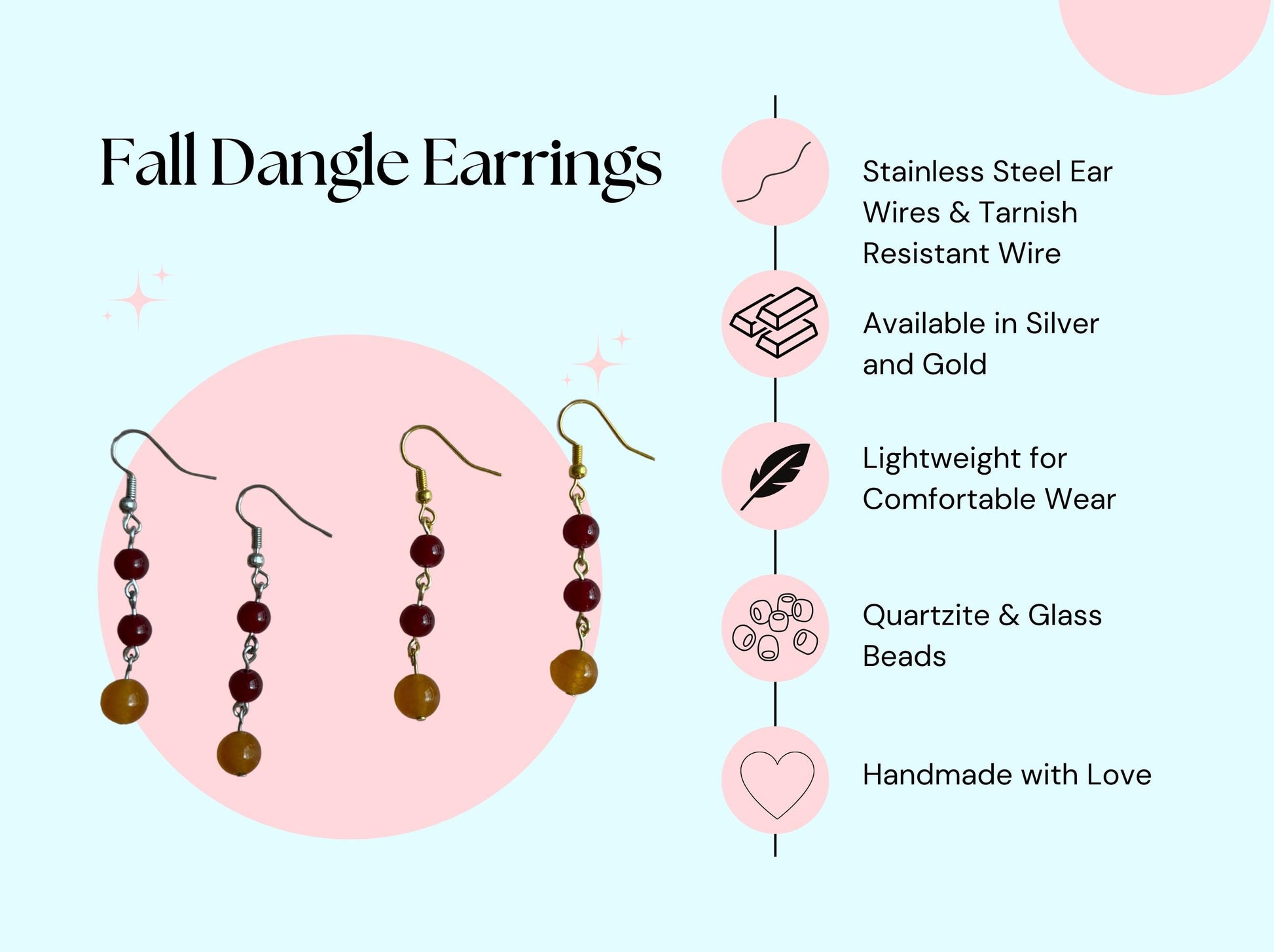 Celebrate the cozy charm of fall with these handcrafted beaded drop earrings, featuring a warm palette of rich burgundy red and golden amber beads. Perfect for adding a seasonal touch to your everyday style, these earrings are lightweight, elegant, and effortlessly stylish!