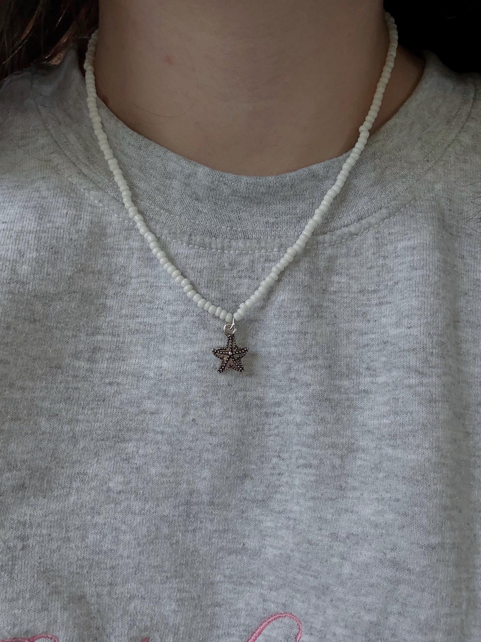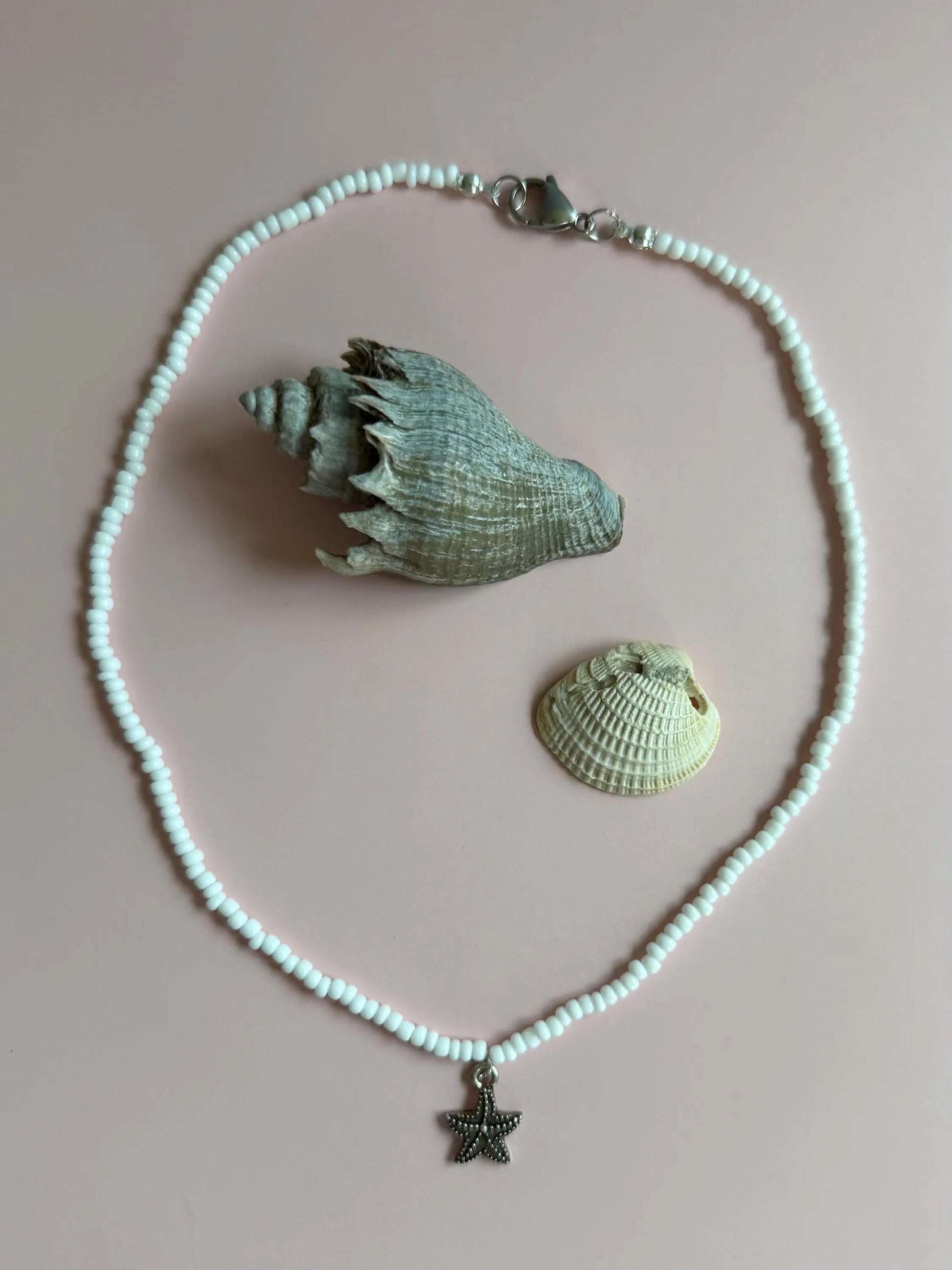 Bring coastal vibes to your everyday style with this handmade white seed bead necklace featuring a silver-tone starfish charm. Lightweight, minimal, and effortlessly beachy, this necklace is perfect for layering or wearing solo for a breezy summer look. Whether you’re heading to the beach or just dreaming of ocean air, this piece adds the perfect nautical touch. Need a bigger size? Grab an extender chain for free! YOUR NECKLACE WILL HAVE A RANDOM STARFISH CHARM. THE LAST PHOTO DISPLAYS THE CHARMS YOU MAY GET ON YOUR NECKLACE!